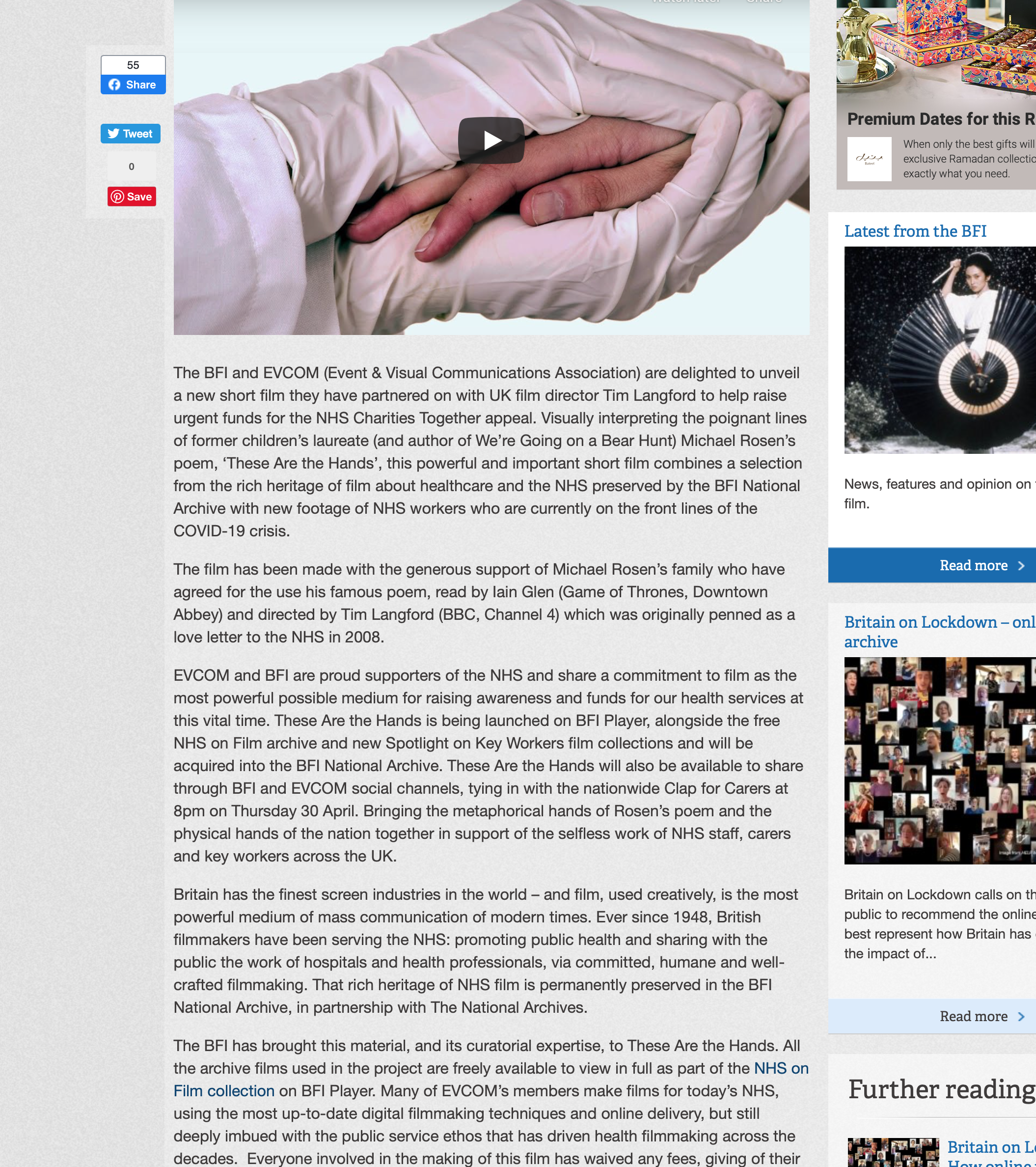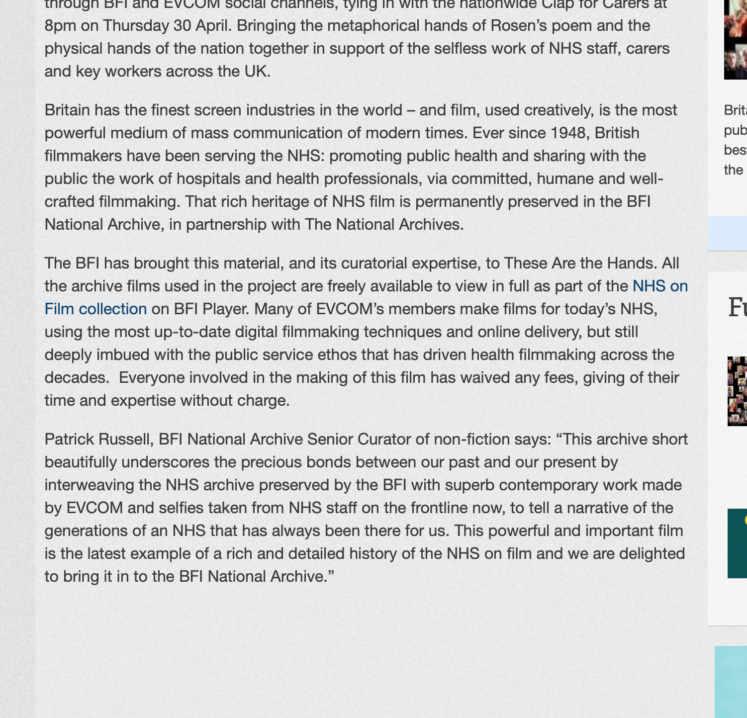 Which brings me to These are the Hands that you can read about here - https://www.evcom.org.uk/news/evcom-and-bfi-collaborate-on-new-film-to-support-the-nhs